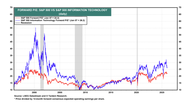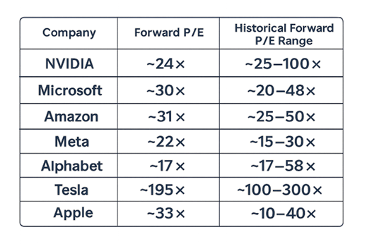 While broad equities are relatively expensive by historical standards, valuations within this range are not extreme given secular growth trajectories. Multiple compression remains a risk, but these valuations do not scream irrational without deeper sector context.