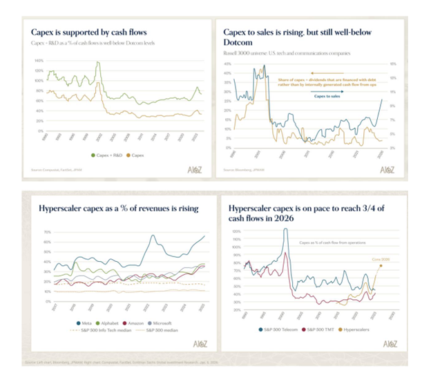 If demand growth slows meaningfully, this is where we could see forced selling and a pullback in asset prices. It’s a critical data point to watch, though this capex is still meaningfully below that of the dot-com era.